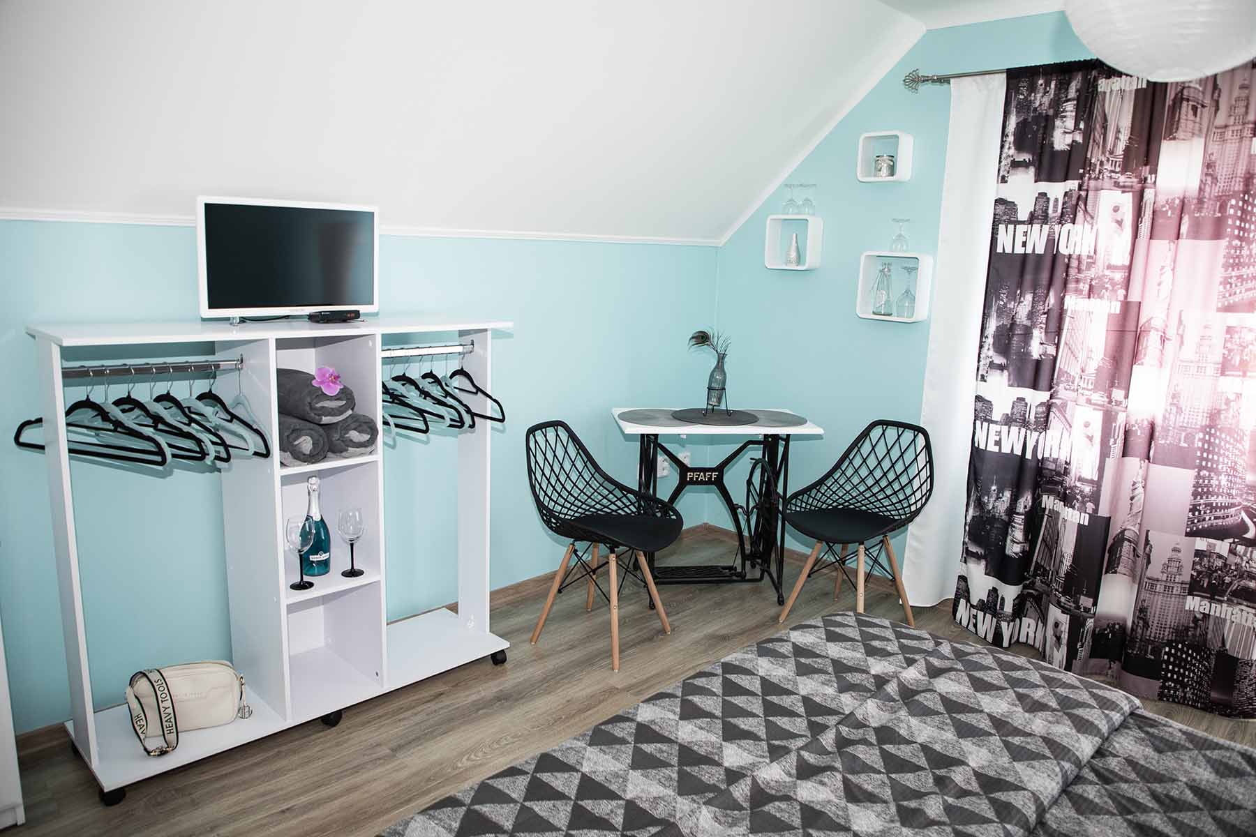 Užíjte si relaxaci a svěžest v Tyrkysovém pokoji ve Vile Marcelka. Tento krásně zařízený pokoj v tyrkysových tónech nabízí pohodlné a stylové ubytování s úchvatným výhledem na Broumovské stěny.